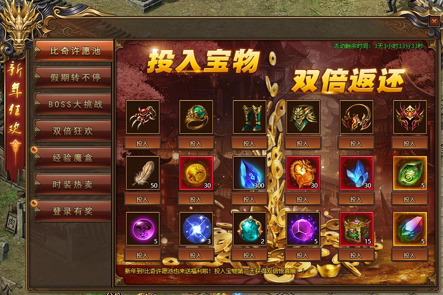 活动规则:活动期间,在比起许愿池投入宝物,第二天可获得双倍惊喜哦!
