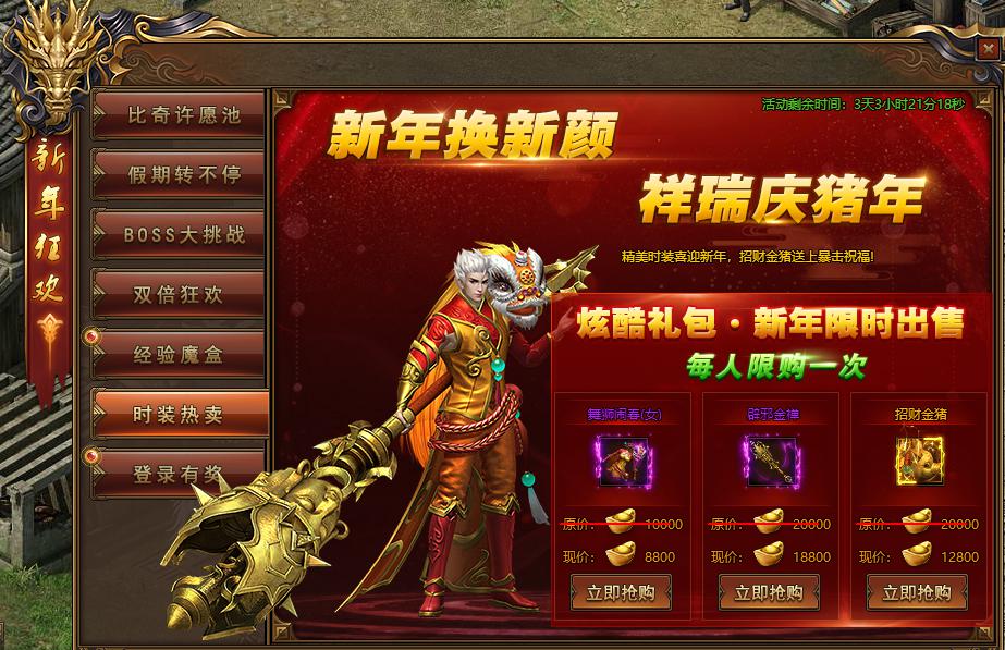 活动规则:活动期间,多种boss,任意挑战!顶级装备,等你来爆!