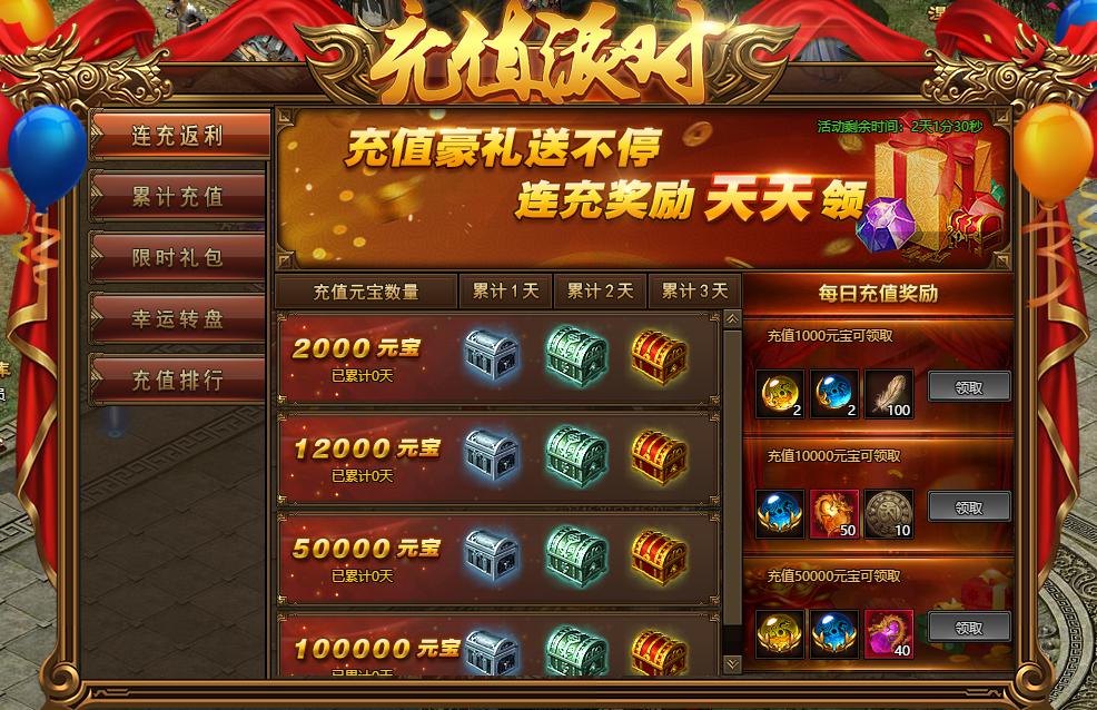 活动规则:活动期间,累计充值元宝达到指定数目即可领取奖励