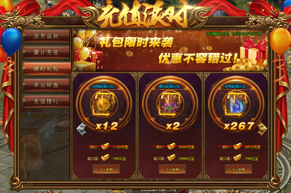 活动规则:每天都可购买限时超值礼包,种类多多,不容错过