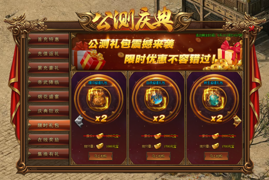 活动内容:公测礼包震撼来袭,限时优惠不容错过~~