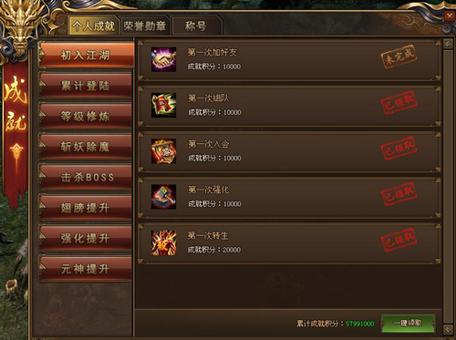 领取成就积分后,可以提升荣誉勋章;