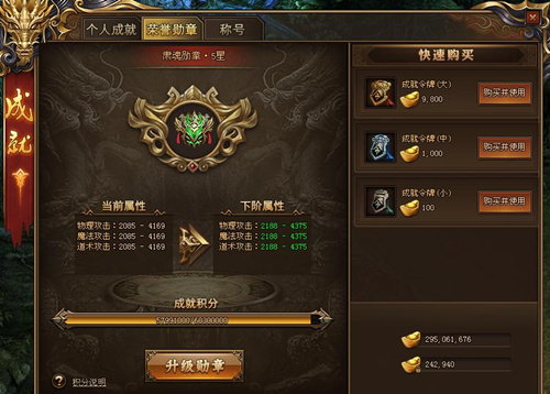 如果成就积分不够升级勋章,可以在旁边的快速购买里选一个;