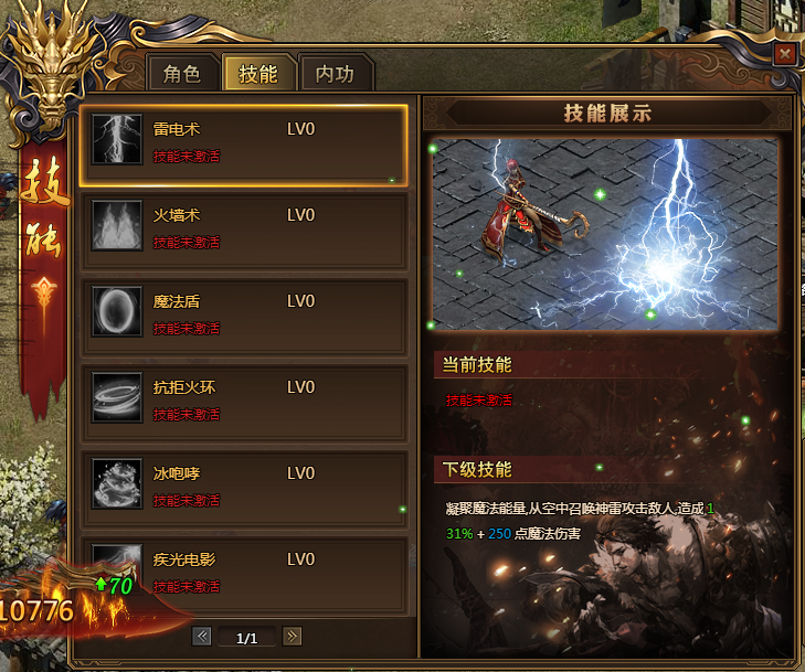雷电术:凝聚魔法能量,从空中召唤神雷攻击敌人,造成131%+250点伤害