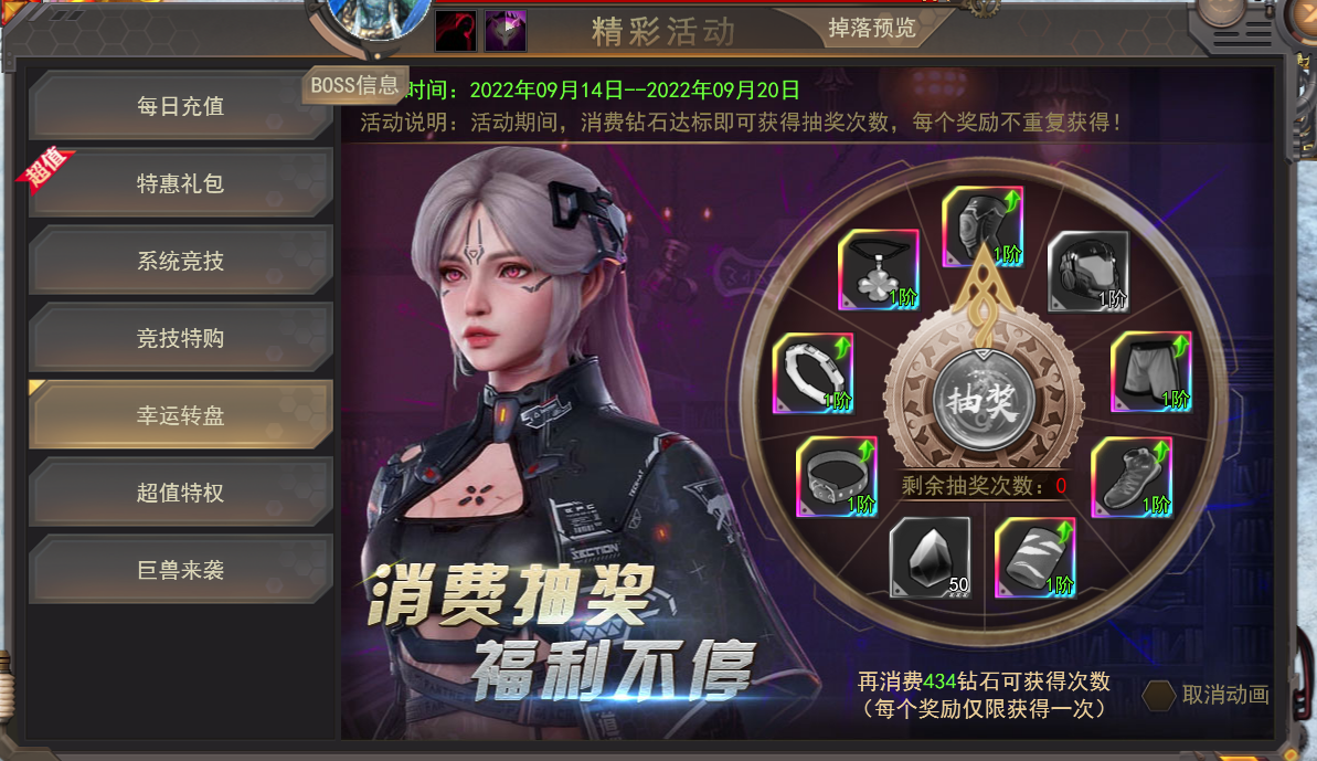 活动说明:活动期间,消耗指定钻石后获得抽奖次数,抽取稀有装备