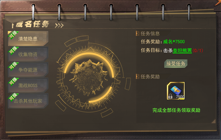 威名任务可获得威名值,威名升级全靠这个任务了!每天一定不要错过!