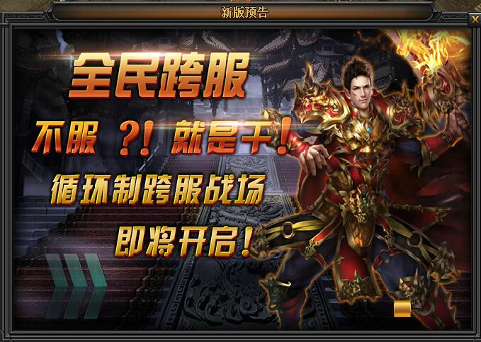 贪玩战队已经出征跨服争霸赛,豪礼备下就等勇者归来,玩家当然不会只有看着的份。全民跨服循环制赛场即将开启,让你不用担心PK没激情,合服被人欺。跨服战不服就是干!