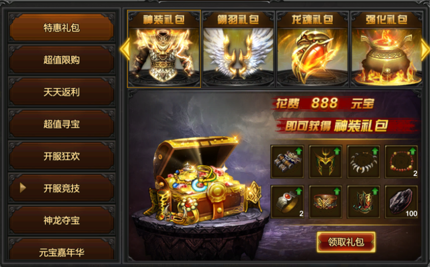 活动说明:开服前三天,上古瑞兽将降临比奇城,击败上古瑞兽可以掉落海量元宝!