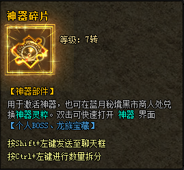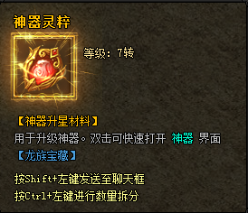 角色转生等级达到7转的玩家,可开启“神器”系统