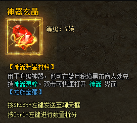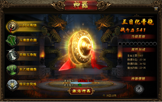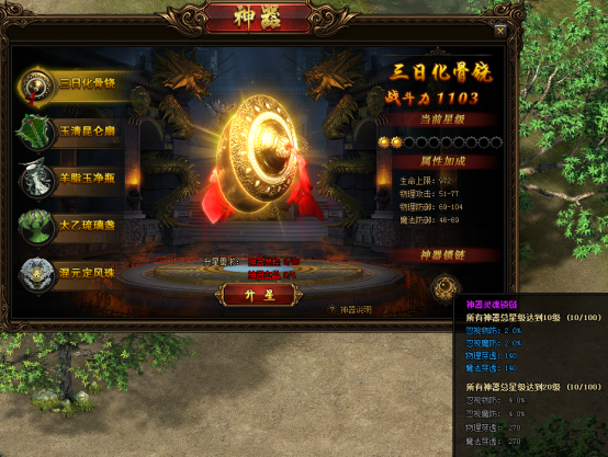 神器激活后,可消耗“神器灵粹”及“神器玄晶”对神器进行升星,进一步提升神器属性
