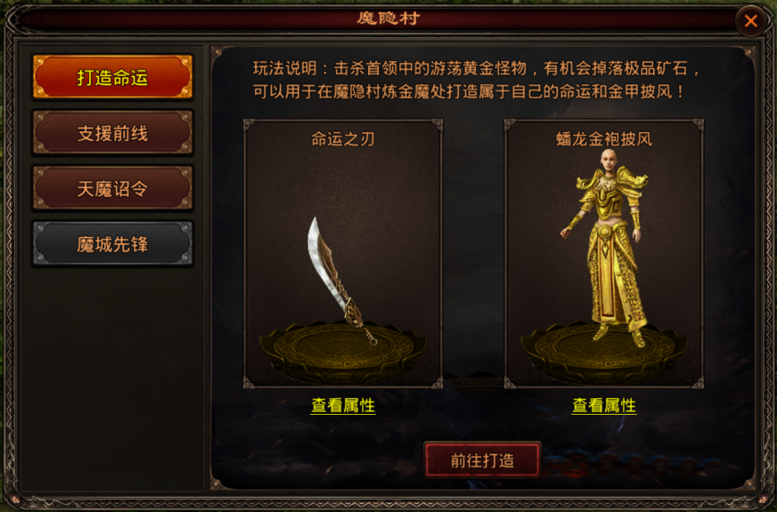 根据地图上的指引,击杀任务所需怪物,可在相应的兑换处换取功勋以及通宝奖励;击杀游荡黄金怪物,更有机会掉落极品矿石,可用于打造属于自己的命运之刃和黄金披风。每周四、周日还可以挑战魔城先锋。