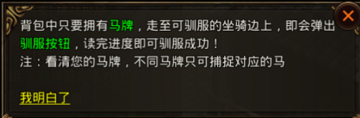 前往马倌处可驯服马匹,骑乘马匹可以使平日旅途速度大增