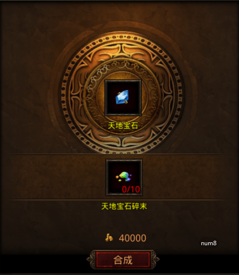 可在锻造-合成里打造勋章,使用天地宝石碎末合成天地宝石