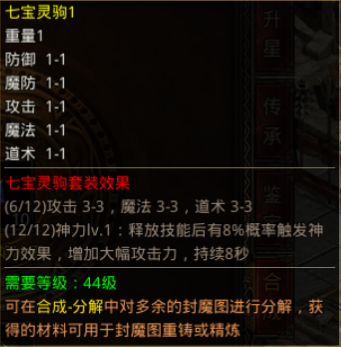 精炼可提升封魔图基础属性,还能使其套装效果变得更强