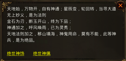 铁匠铺-归元一气炉可以打造绝世神饰,神佩可以和穿戴的佩饰进行融合,融合后会将神级属性转移到对应部位上