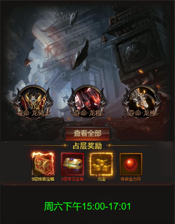 3.每次夺命塔只开放30分钟,临界关闭时夺命塔会根据玩家所在的层数发放相应奖励,层数越高奖励越丰厚