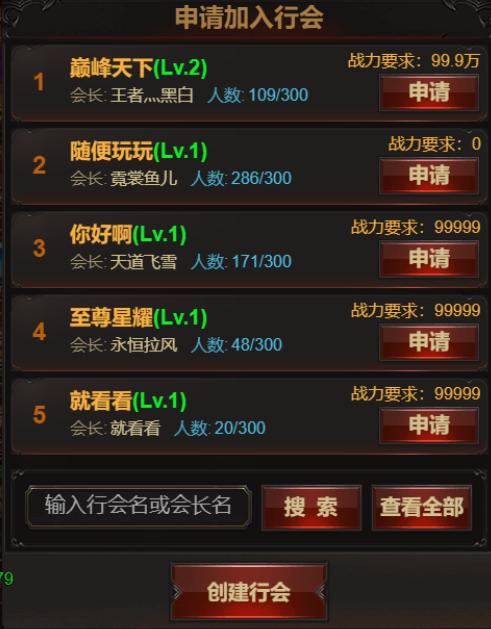 2、玩家也可以选择申请加入一行会,加入成功之后默认是会员
